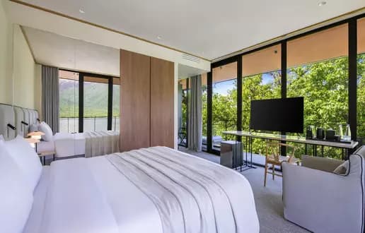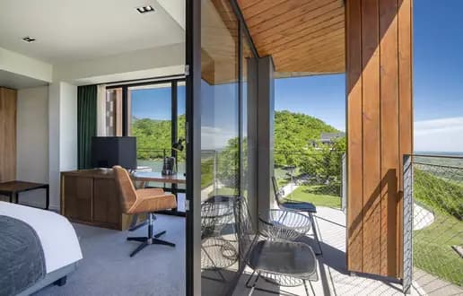 სასტუმროს მყუდრო ტერასიდან, ისევე, როგორც თითოეული ნომრიდან შესაძლებელია ალაზნის ველის, 44 ჰექტარზე გადაჭიმული ბუნებრვი ტბისა და ტყის პანორამული ხედებით ტკბობა.
