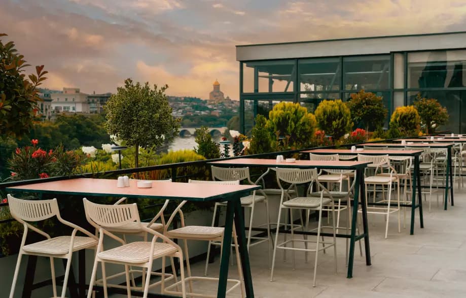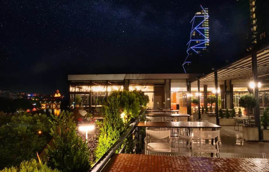 დახვეწილი ინტერიერი, პანორამული ხედები თბილისზე, 800კვ.მ-ზე გაშლილი ტერასა, სცენა, ღია და დახურული ბარი, გამორჩეული გასტრონომია და დახვეწილი სერვისი - ეს არის სივრცე, სადაც ძველი და ახალი ჰარმონიულად ერწყმის ერთმანეთს.
